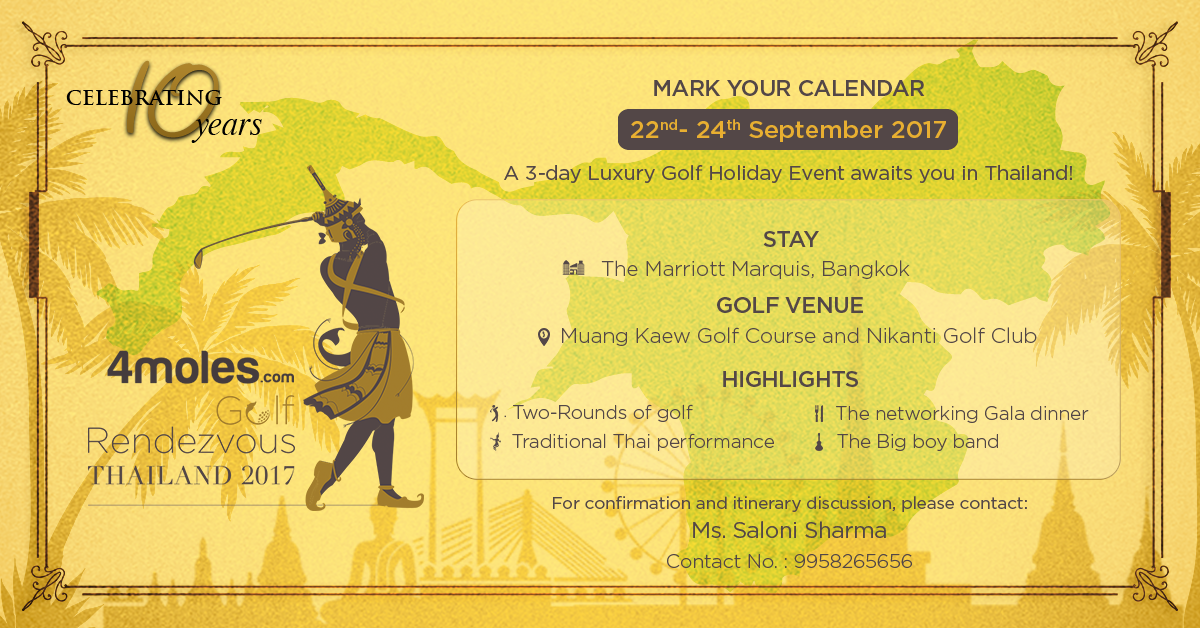 4moles brings you ‘4moles Golf Rendezvous in Thailand', an exclusive 3-day golf holiday event in Thailand that kicks off from 22 September 2017.