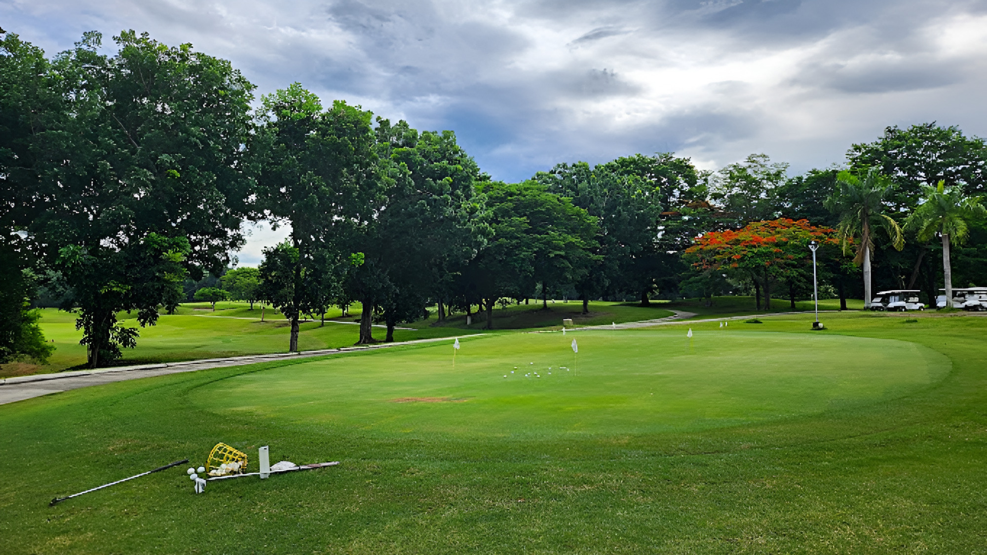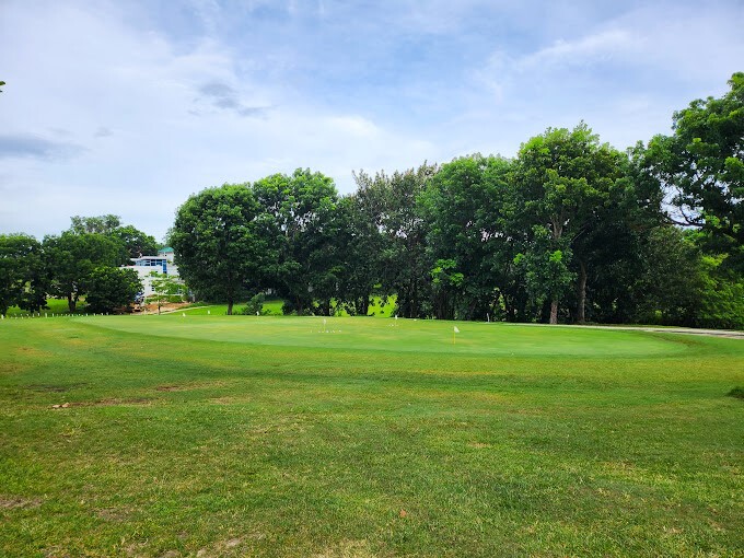 Pueblo de oro Golf and Country Club is a 18-hole course, par-72 championship course and 6,974 yards long. It features Tifton and Tif-dwarf grass. The course also has five interconnected lakes, subsurface draining, and expert contouring to make it playable even during rainy months. The course has many challenges, including a signature 13th hole that requires a tee shot over a gorge, as well as doglegs, bunkers, elevation changes, and narrow and sloping greens.