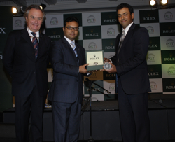 Anirban Lahiri received the award for the Rolex Player of the Year 2009, a Rolex custom engraved timepiece, from Mr. Yogesh Shah, Managing Director, Rolex India. Lahiri topped the Aircel-Professional Golf Tour of India’s Order of Merit for 2009 with total earnings of Rs. 36,57,853 in the 2009 season. The Bangalore-based professional won two titles and had seven other top-10s out of 11 starts in the current season.